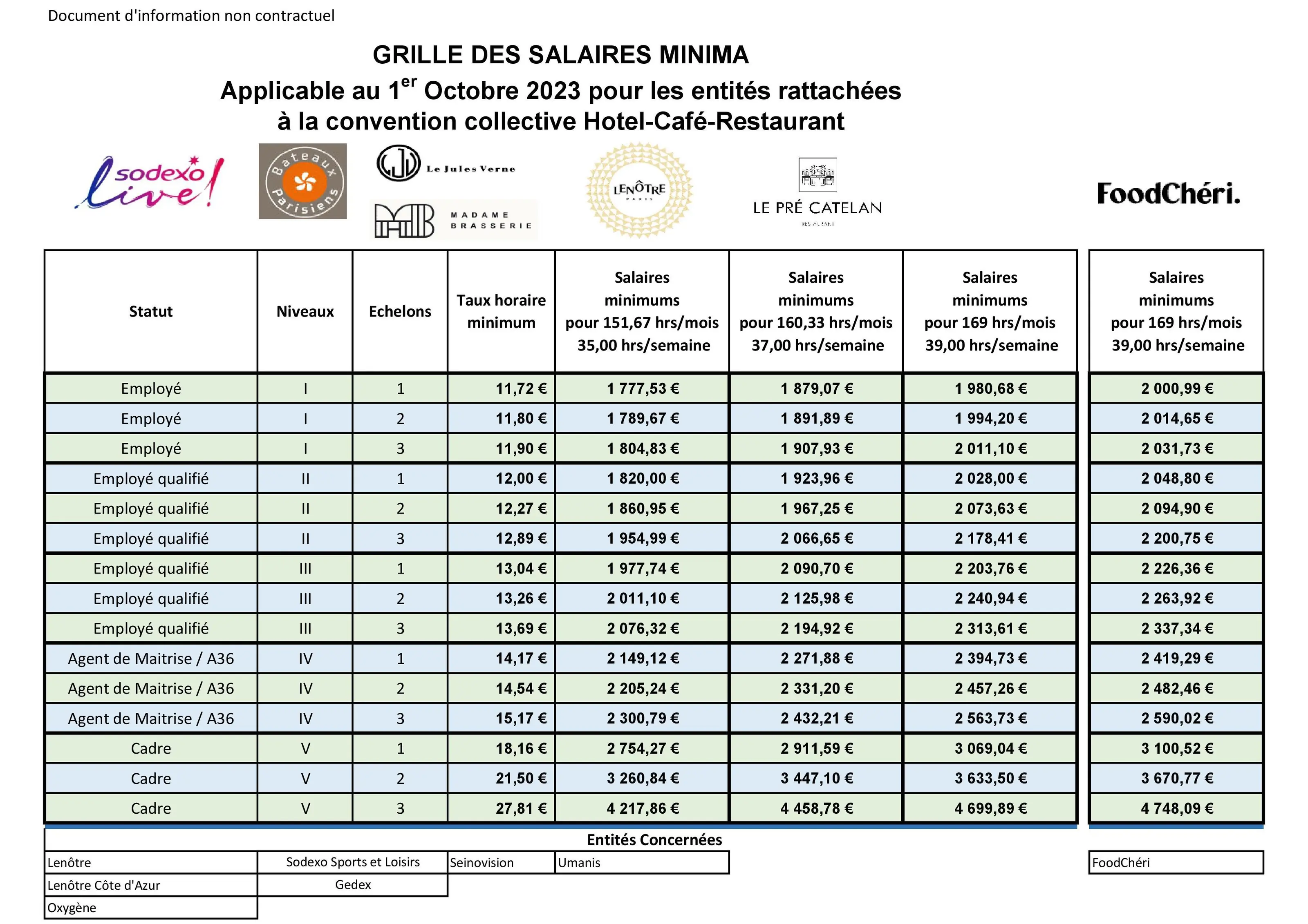 Grille des Salaires - Applicable au 1er Janvier 2024